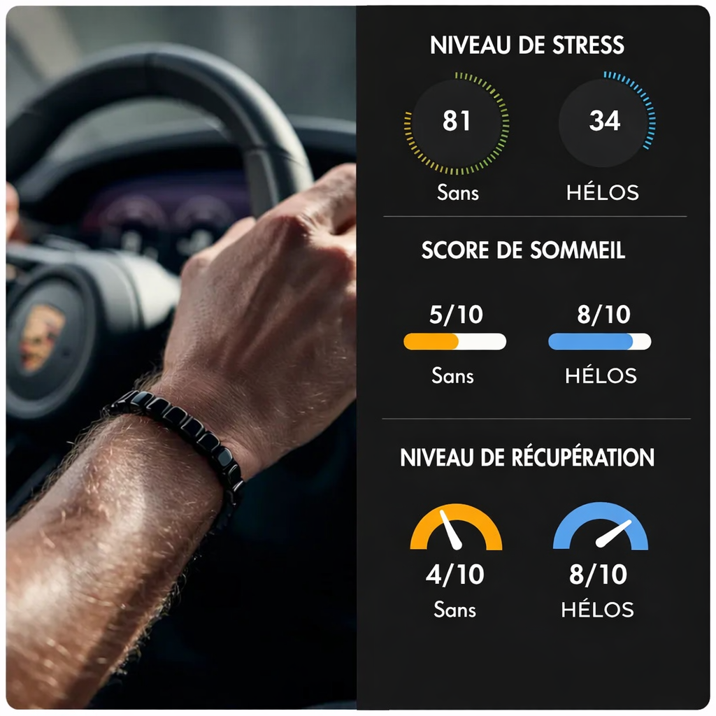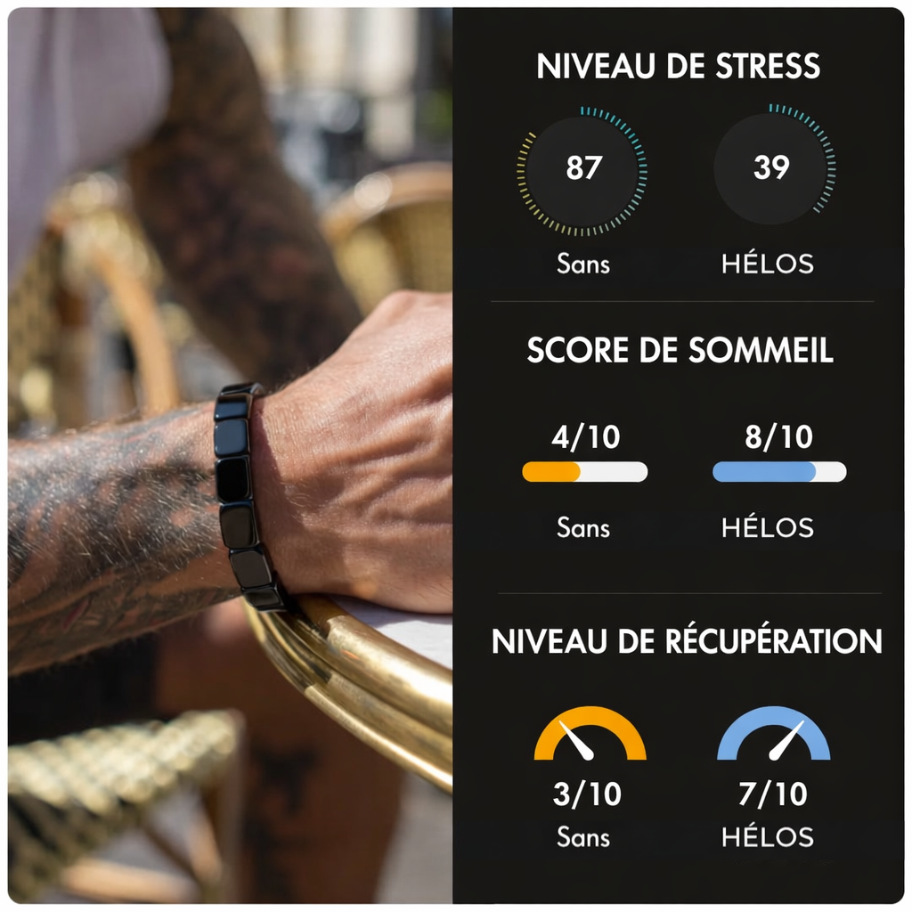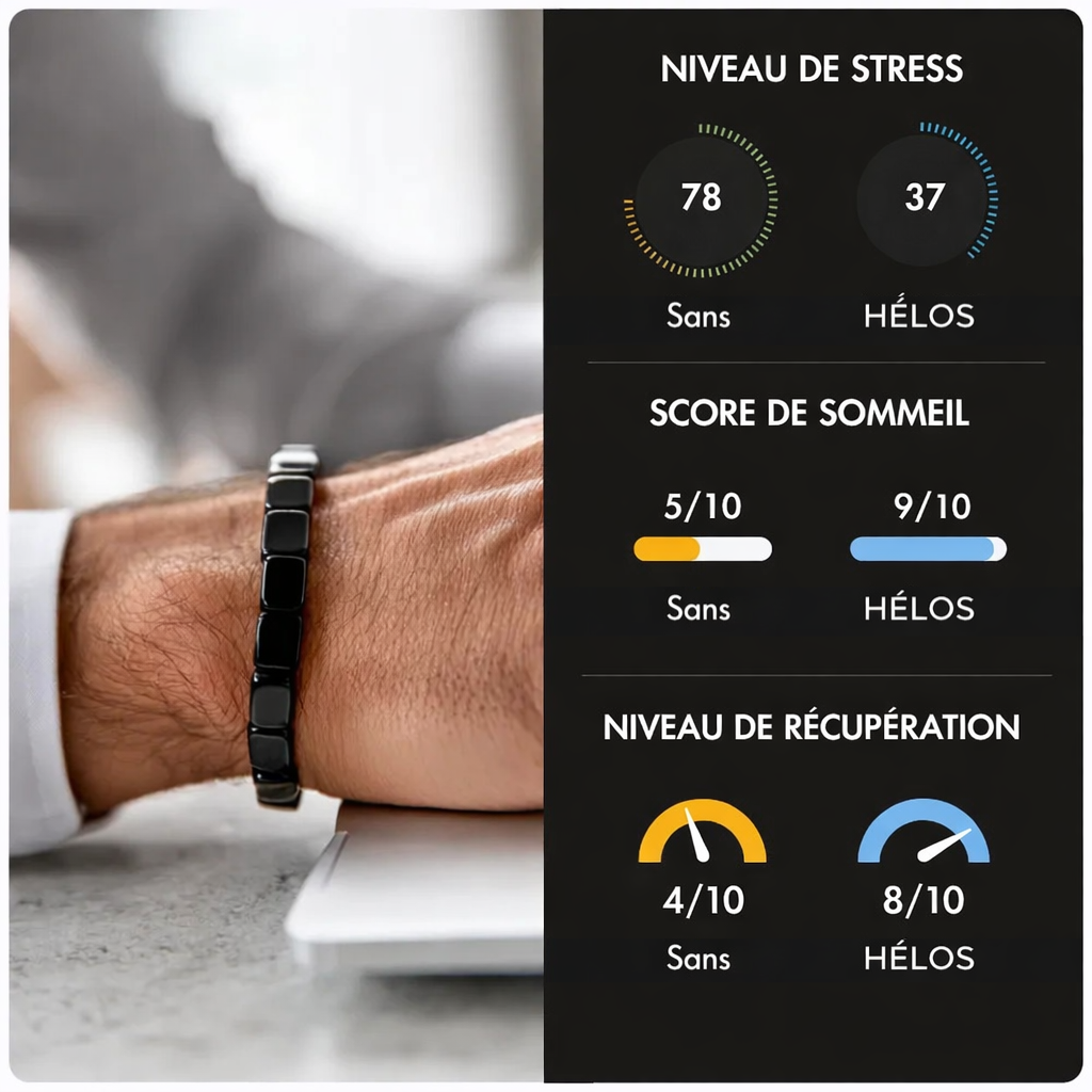 Je dormais mal depuis des mois.Depuis que je porte Hélos, mon sommeil est plus profond.Je me réveille avec plus d’énergie, moins irritable.Même mon stress quotidien a diminué.Franchement surpris.